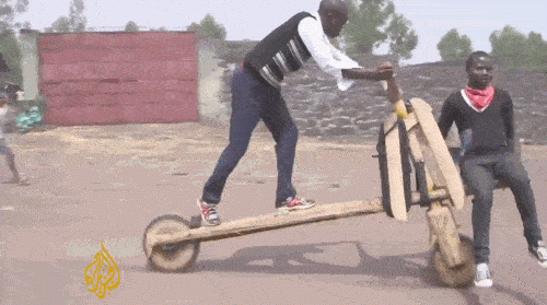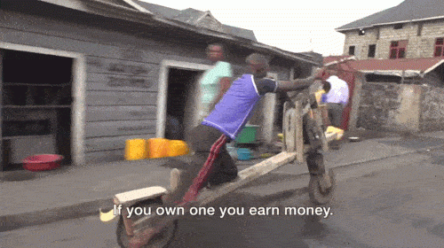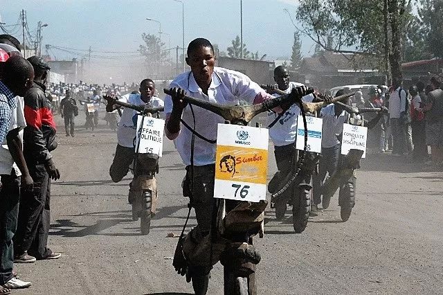 在非洲剛果的戈馬,市中心最具風(fēng)采的街景就是那些騎著木頭踏板自行車(chē)風(fēng)馳電掣的年輕人。