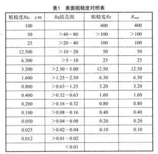 根據(jù)GB/T 1031-2009《產(chǎn)品幾何技術(shù)規(guī)范(GPS)表面結(jié)構(gòu)輪廓法表面粗糙度參數(shù)及其數(shù)值》標(biāo)準(zhǔn),關(guān)于粗糙度有幾個(gè)參數(shù),其中在實(shí)際生產(chǎn)中作為產(chǎn)品評判用的主要有Ra、Rz和Rmax,根據(jù)表1所示的粗糙度對照表中各粗糙度參數(shù)的關(guān)系說明,Ra3.2 μm對應(yīng)的Rz為12.5 μm。